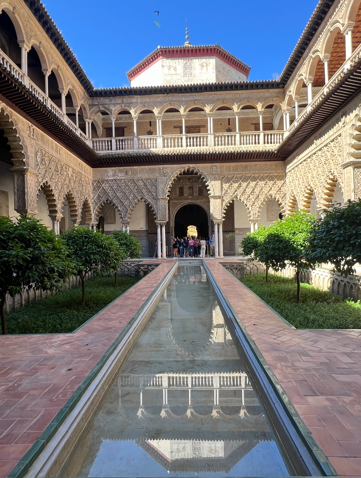 세비야의 알카사르는 서고트의 바실리카를 대대적으로 개축하다 무와히드 왕조에서 왕궁으로 사용한 것이 역사의 시작입니다. 스페인의 알카사르 대부분은 스페인의 기독교 문화와 중세 이슬람 문화의 융화된 결과물입니다.
